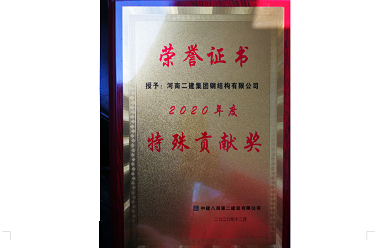 公司被中建八局授予“2020年度特殊贡献奖”